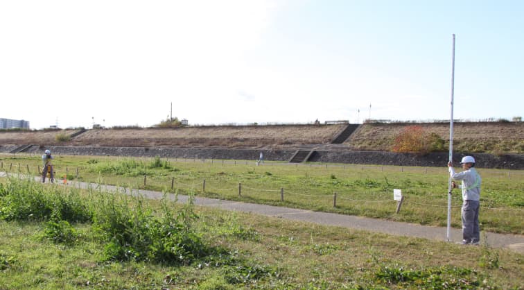 河川の管理や工事のために必要な詳細なデータを収集します。堤防の設計や河川改修工事において、流域の地形や水深などを正確に測定し、安全で効果的な河川管理・工事が進められるよう支援します。